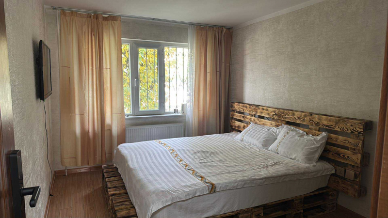Floor 1, Building no7, Microdistrict 19 (5-story yellow brick building). Spacious room, new comfortable mattress, sanitized white linens, very clean. * Samsung 42" Smart TV, WiFi internet. * No kitchen. * Ample outdoor parking. Quiet environment. * Available for daily rent. * Discounts available for stays of 3 nights or more. Square : 24мкв |